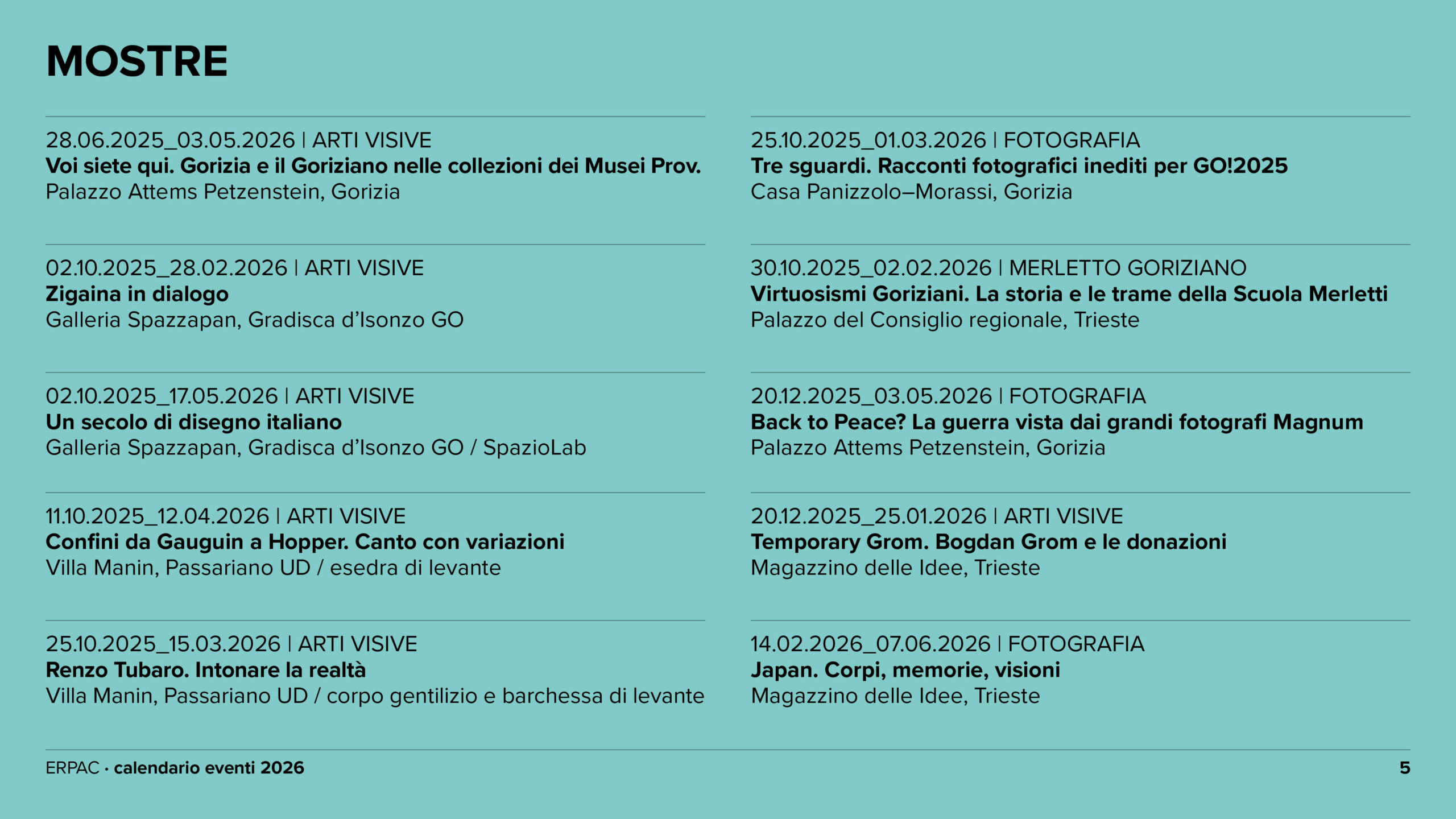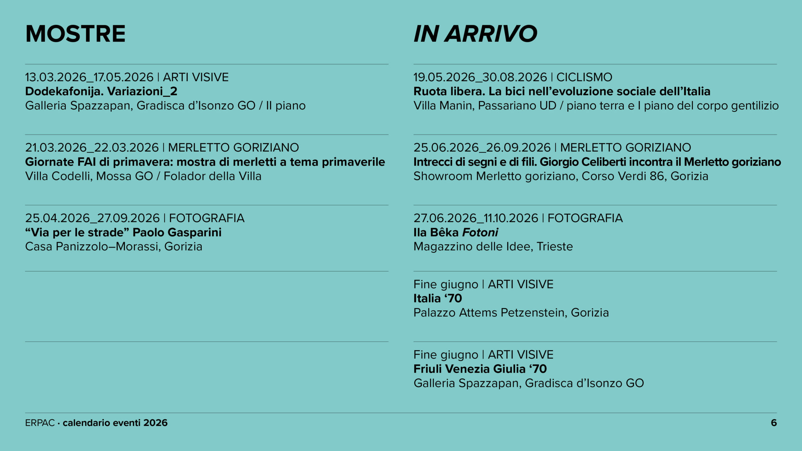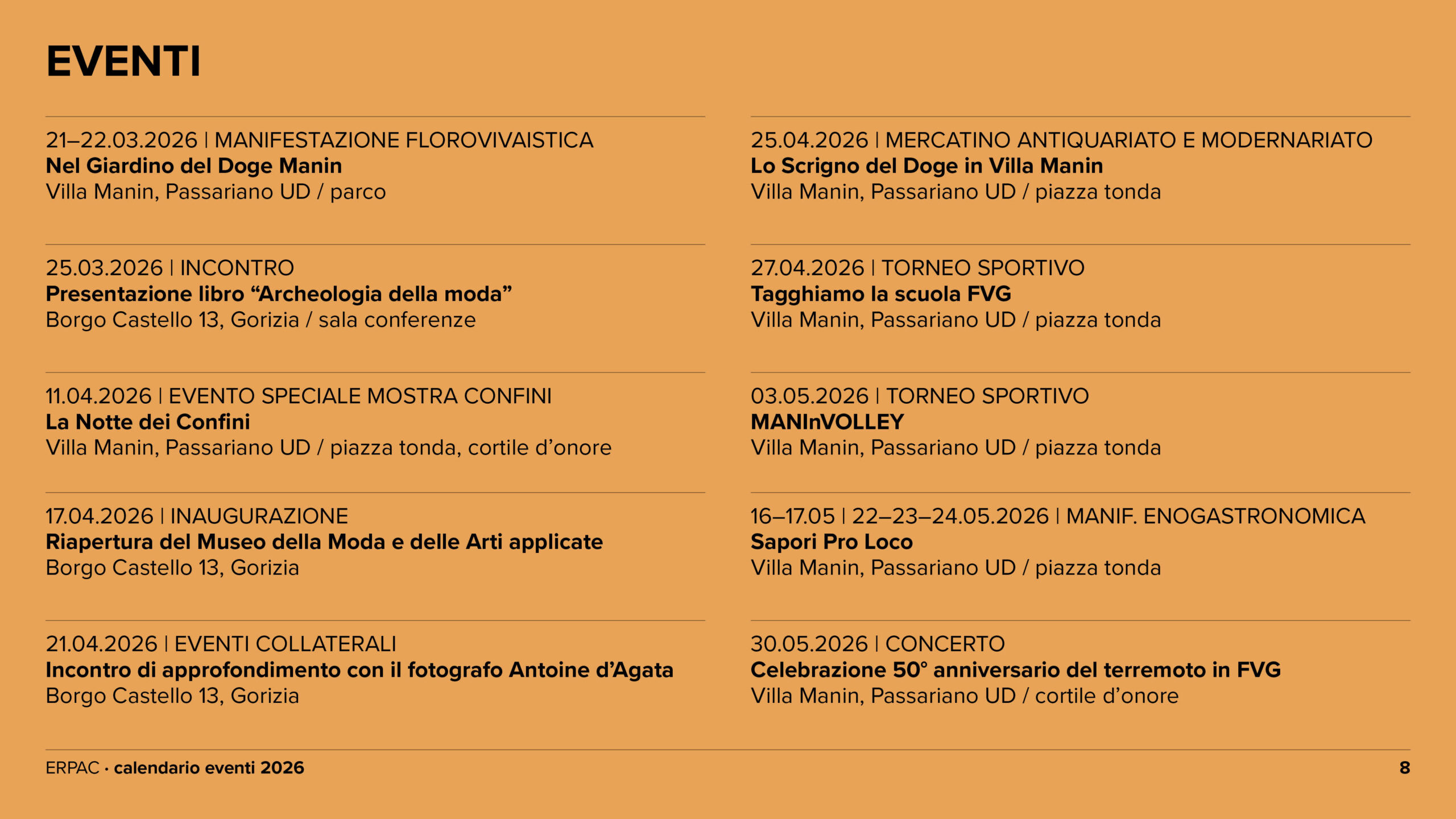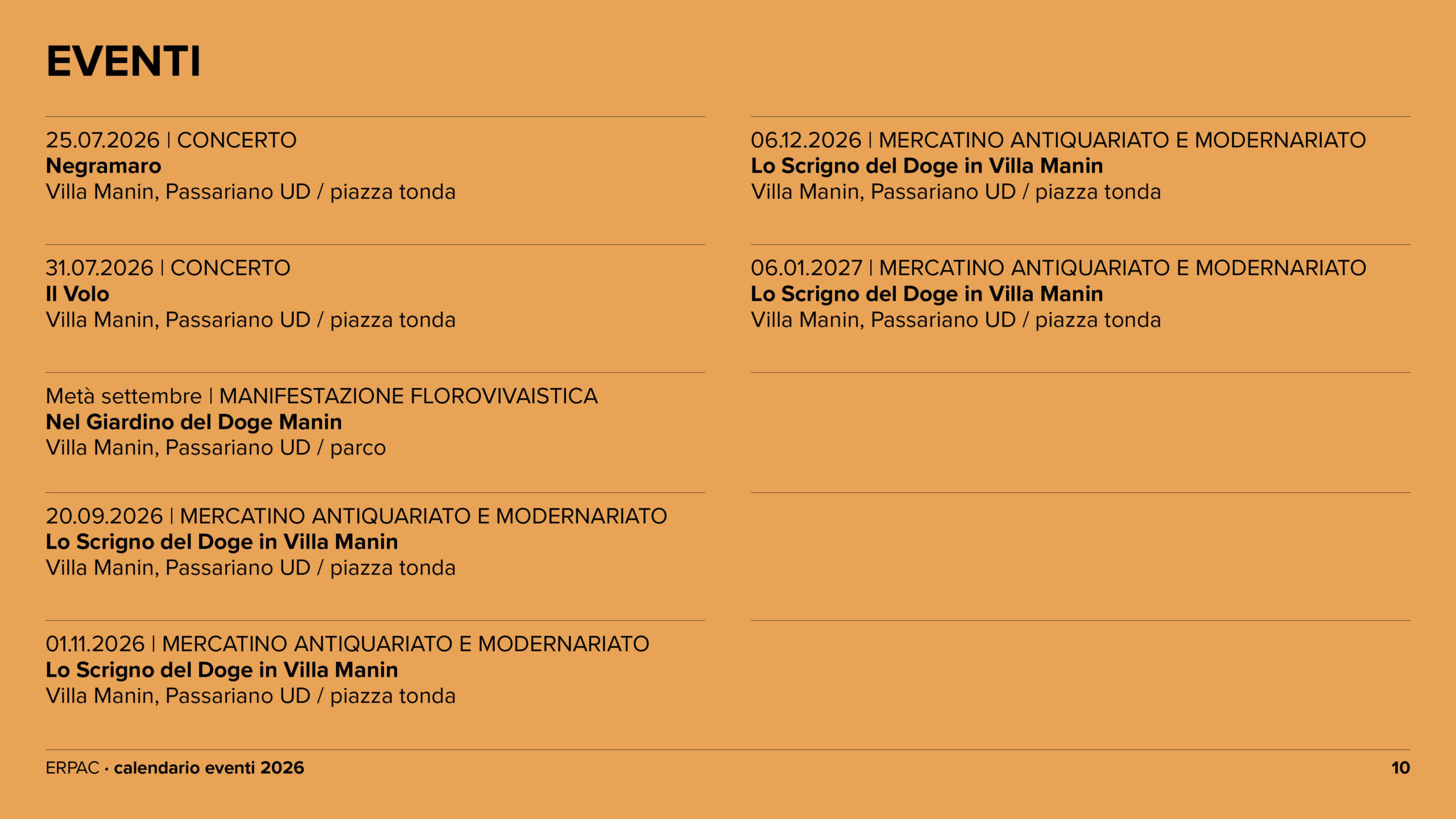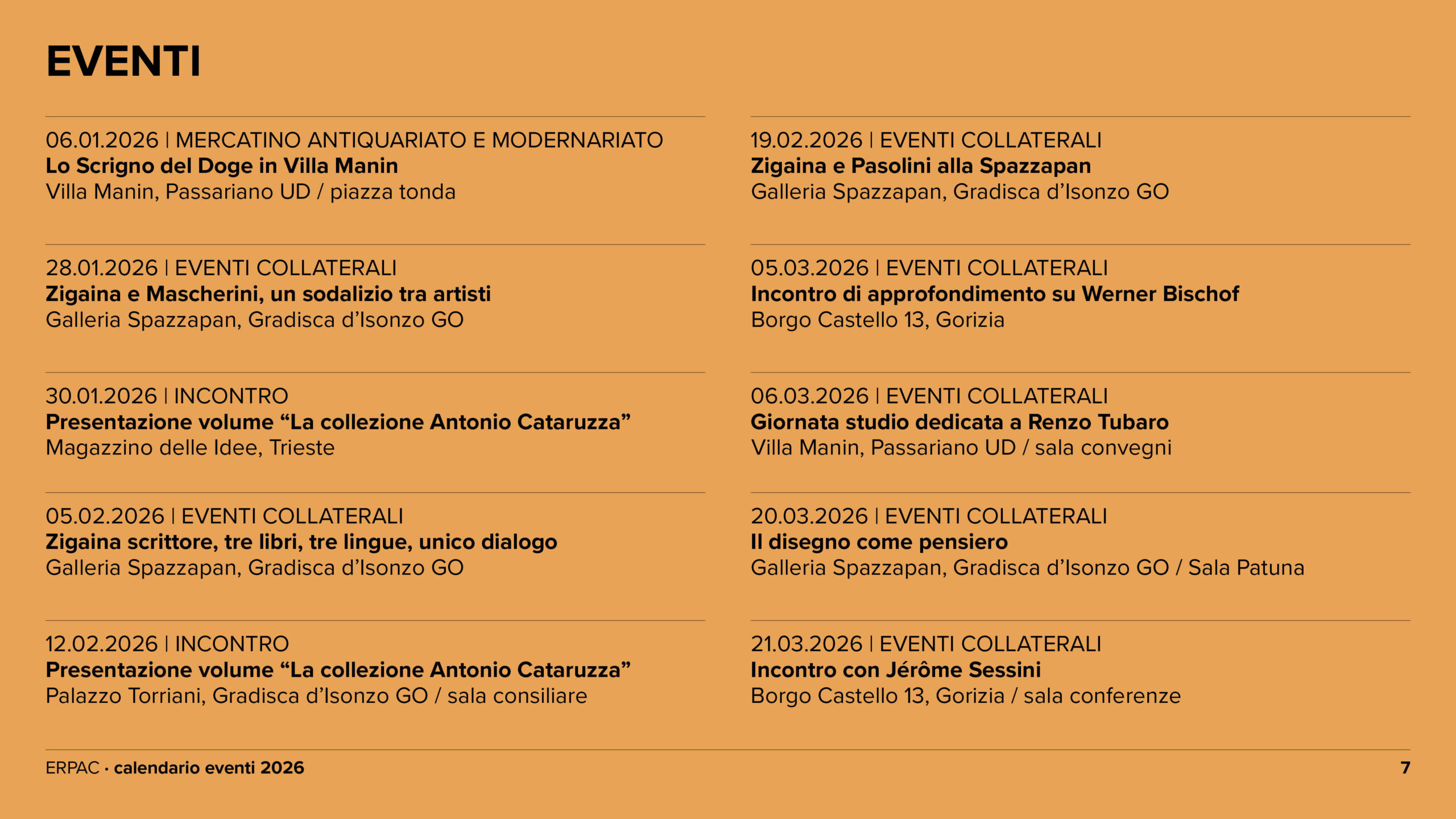 Calendario eventi ERPAC 2026